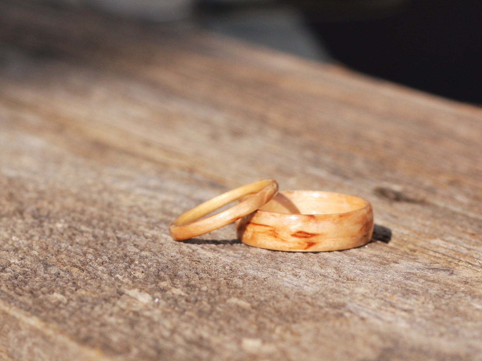 The ring we made for him was of maple, harvested by his dad from a tree that the son watched grow from his bedroom window. He called it “his tree.” The outer surface of the ring was from wood harvested from a favorite summer family vacation spot.
