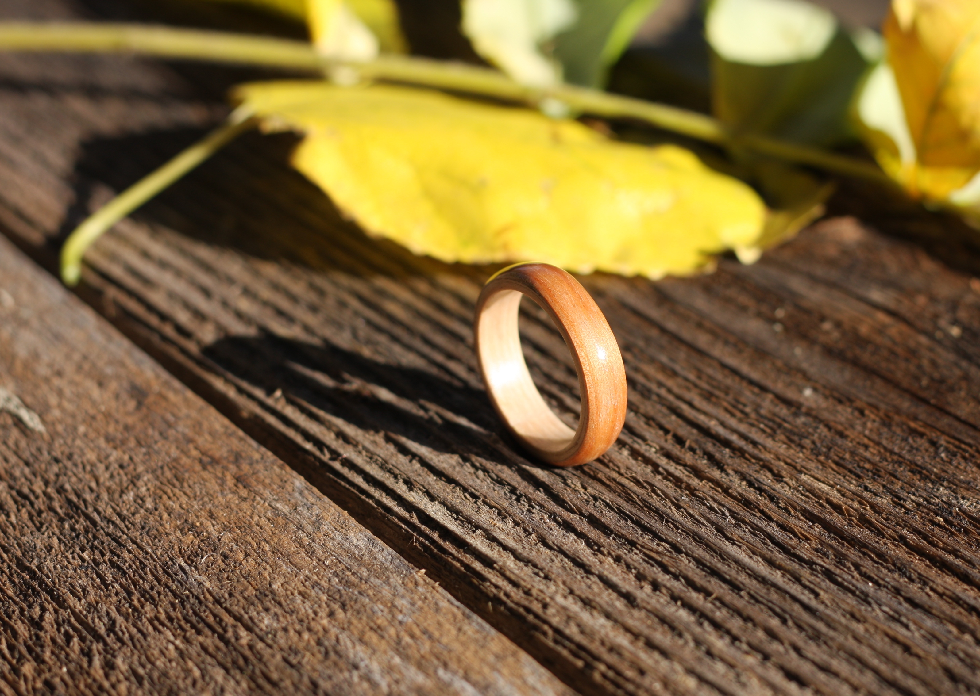 Let us know the wood species that you have selected, your ring size and other specifics regarding whether you want a wide thick ring, or a thinner profile. Usually the rings are about 2mm thick (that is comfortable) and 5-8mm wide. We have a convenient Ring Sizing Chart as well, to make a custom fit.